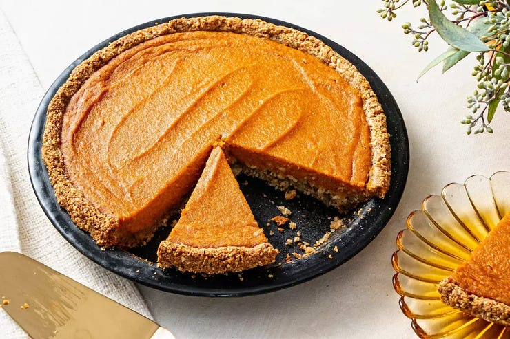 Öncelikle, bu tarif için gereken toplam sürenin sizi ürkütmesine izin vermeyin, zira neredeyse tamamı el yordamıyla yapılıyor. Sürenin büyük bir kısmı tatlı patatesleri ağır ağır kavurarak doğal tatlılıklarını arttırmak ve onlara daha kremamsı bir doku kazandırmakla geçiyor. (Zamanınız kısıtlıysa fırın sıcaklığını artırabilirsiniz, ancak doku tam olarak aynı olmayacaktır). Dolguda ekstra derinlik için beyaz şeker yerine esmer şeker kullanılır ve narenciye aromalarını canlandırmak için kakule, tarçın ve portakal kabuğu rendesi ile tatlandırılır. Ve bunu geleneksel bir turta hamurunda pişirebilseniz de, bu bademli hamurun hazırlanması daha kolaydır, ekstra lezzet katar ve ayrıca glütensizdir. Bu turta tek başına da lezzetlidir, ancak bir top krem şanti veya bir top vanilyalı dondurma kesinlikle fena olmaz.